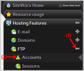 2. Under "SiteWorx Menu", click the "Hosting Features" menu item if it is not already open.